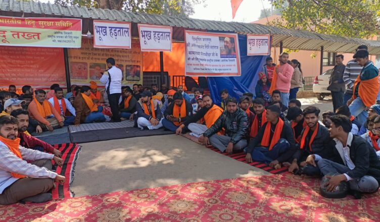 भूख हड़ताल पर बैठे श्री हिंदू तख्त के राष्ट्रीय प्रवक्ता अशोक तिवारी को राष्ट्रीय बजरंग दल पंचकूला ने दिया समर्थन