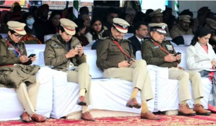 CHANDIGARH : गणतंत्र दिवस समारोह में पुलिस अधिकारी मोबाईल में व्यस्तबनी चर्चा का विषय, खूब वायरल हो रही तस्वीर