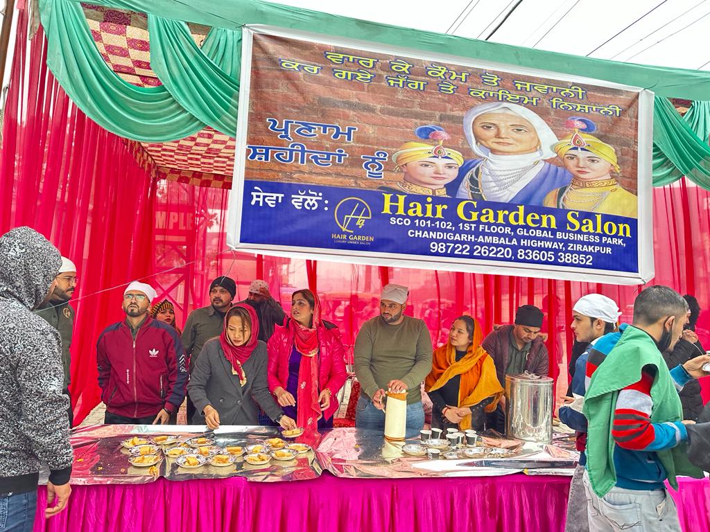 ग्लोबल बिजनेस पार्क, जीरकपुर स्थित हेयर गार्डन सैलून एंड एकेडमी ने आज यहां छोटे साहिबजादों की स्मृति में लंगर का आयोजन किया। बड़ी संख्या में आसपास के लोगों ने लंगर का लाभ उठाया। सैलून के सह-संस्थापक, रजनीश ने कहा कि 10वें सिख गुरु गोबिंद सिंह जी के बच्चों और मां द्वारा किए गए सर्वोच्च बलिदान की याद में हमने यह भंडारा आयोजित किया। साल 1704 में मुगल सेनाओं द्वारा आनंदपुर साहिब पर हमले से भड़की घटनाओं में दोनों साहिबजादे मारे गए थे। गुरु गोबिंद सिंह की माता गुजरी और दो अन्य पुत्र साहिबजादा अजीत सिंह और साहिबजादा जुझार सिंह भी सप्ताह भर में शहीद हो गए।हेयर गार्डन की निदेशक सुश्री रीत काहलों ने कहा, “हमारे पास हेयर प्रोफेशनल्स हैं जो सर्वश्रेष्ठ हेयर ट्रीटमेंट सेवाएं देते हैं। हमारी पूरी टीम अच्छी तरह से प्रशिक्षित है और यह अपनी श्रेणी में सर्वश्रेष्ठ सेवा प्रदान करती है।” हेयर गार्डन में केवल वनस्पति आधारित उत्पादों का उपयोग होता है और इसकी थीम पर्यावरण के अनुकूल कार्यों पर आधारित है। सैलून एक बड़े फ्लोर एरिया में फैला हुआ है, जो ट्राइसिटी और यहां तक कि पंजाब में सबसे विशाल है।